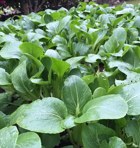 庭に小さな畑があります。ここには、夏はきゅうり、トマト、ナス、インゲンなどを栽培しています。 では、秋には何を作っているかというとチンゲン菜です。ウチではずっとチンゲン菜を作り続けています。